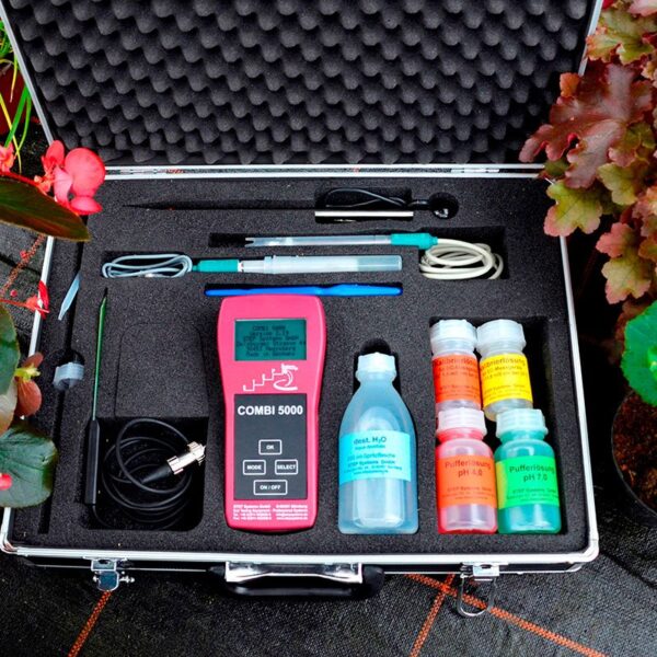 Pomoću ručnog mjernog instrumenta COMBI 5000 mogu se brzo i točno odrediti parametri važni za rast kao što su pH vrijednost, EC vrijednost, aktivnost (slanost u supstratu/tlu), temperatura, vlažnost tla, vlaga i tlak zraka.